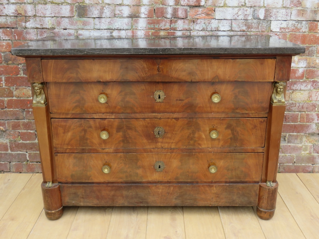 Antique French Empire Mahogany Marble Top Chest of Drawers