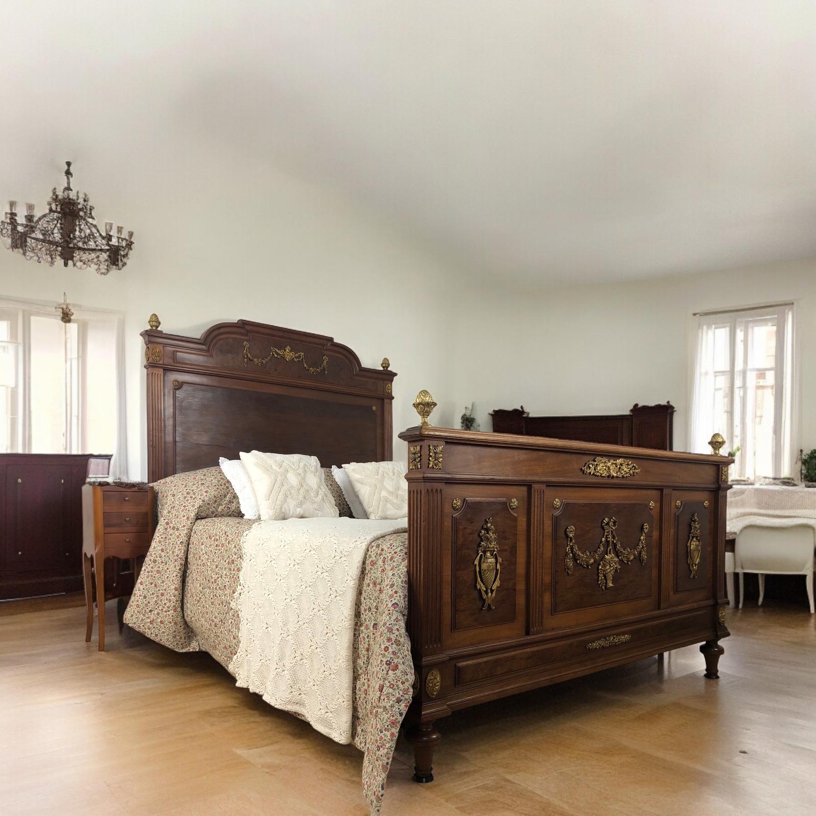 Antique French Empire Style Double Bed Frame Ormolu Mounts
