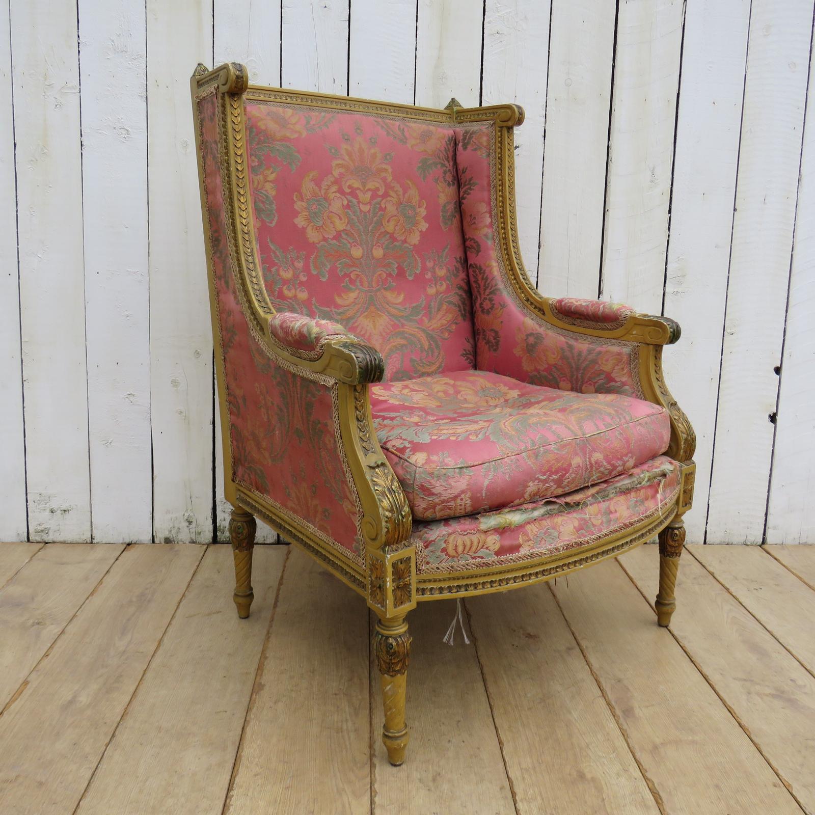 Antique French Empire Wingback Armchair