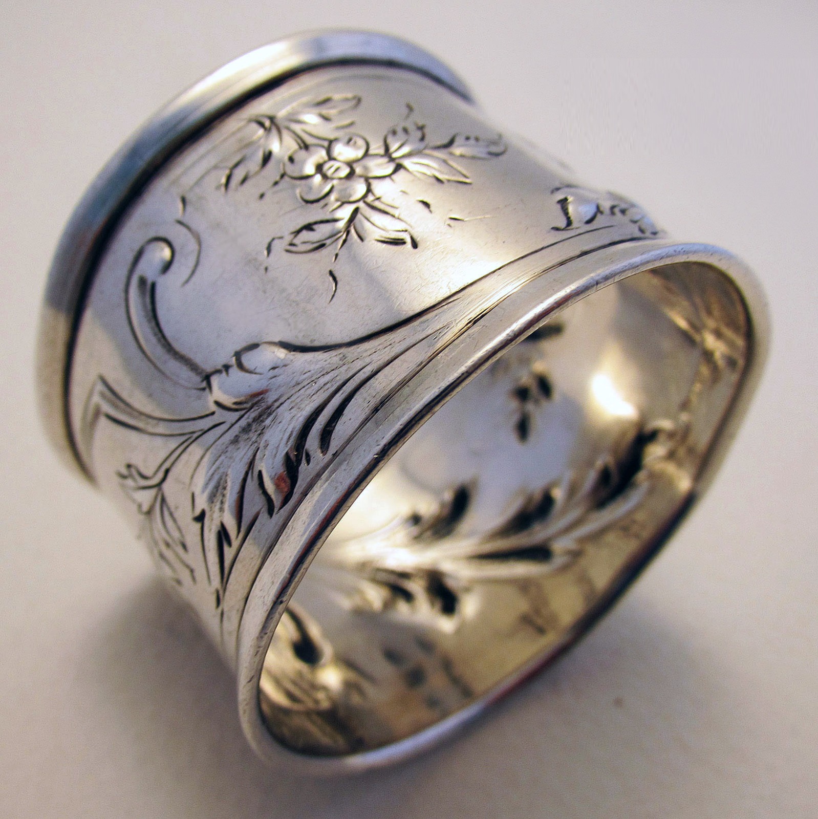 Antique French Esthetic Decoration, Sterling Silver Hallmarked Serviette Napkin Ring, Minerva .950 C.1890