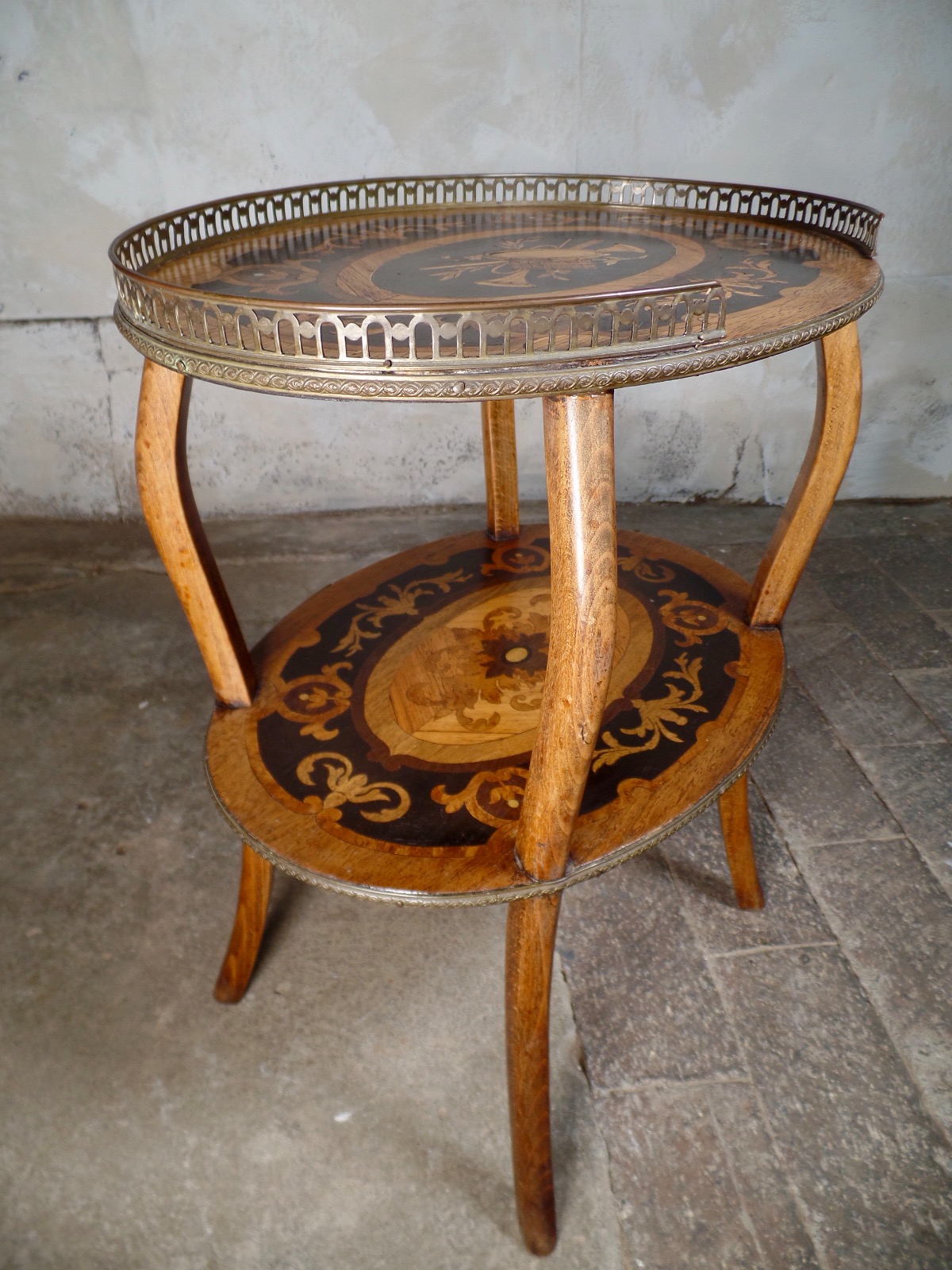 Antique French Etagere Walnut Bronze Two-Tier Side Table Inlaid Marqutery (1 of 1)
