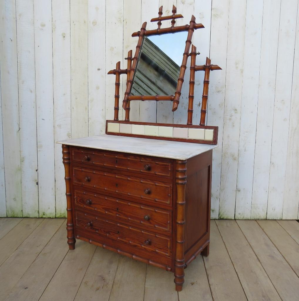 Antique French Faux Bamboo Chest of Drawers with Mirror