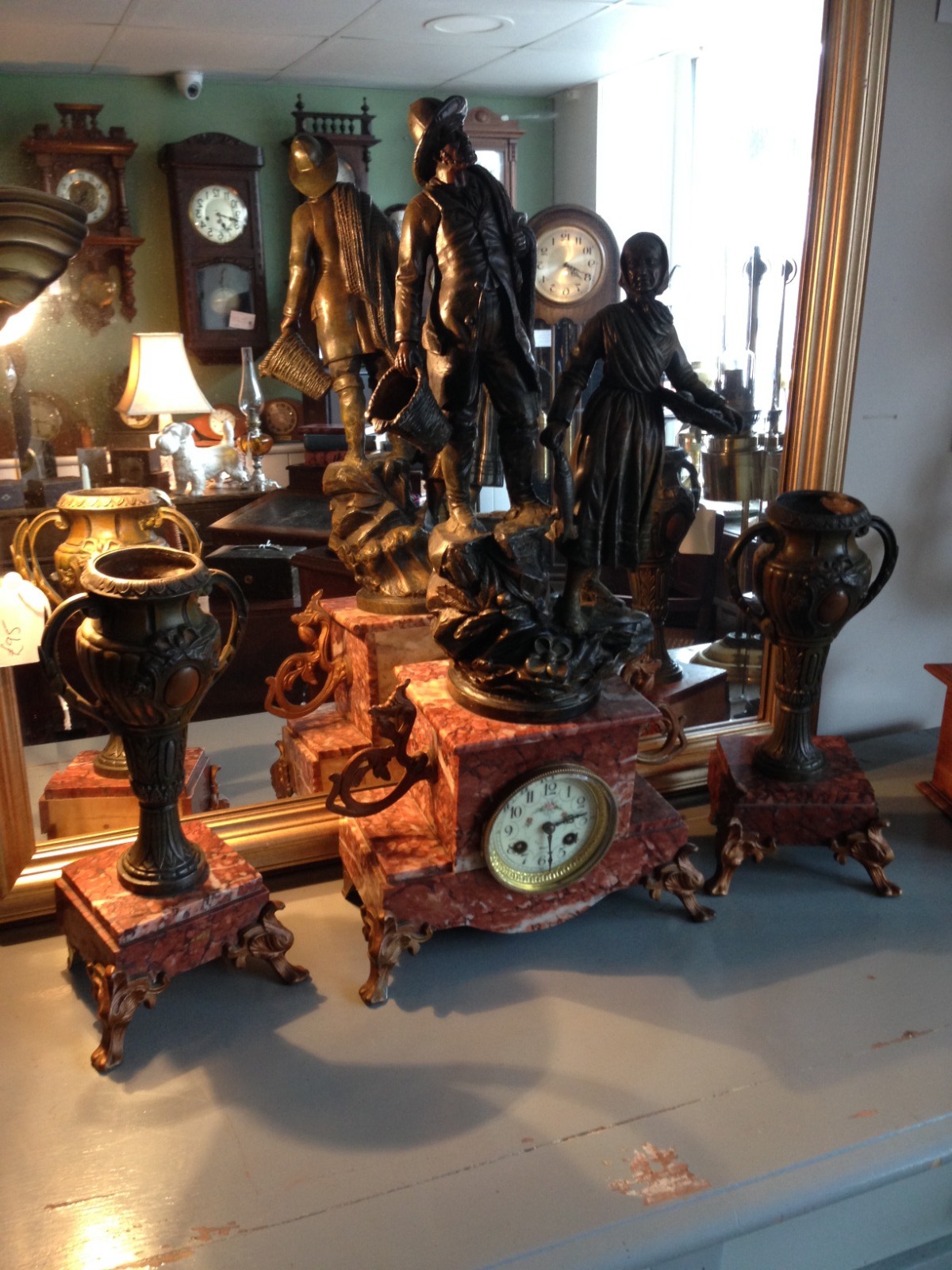 Antique French Figural Clock with Garniture c.1890