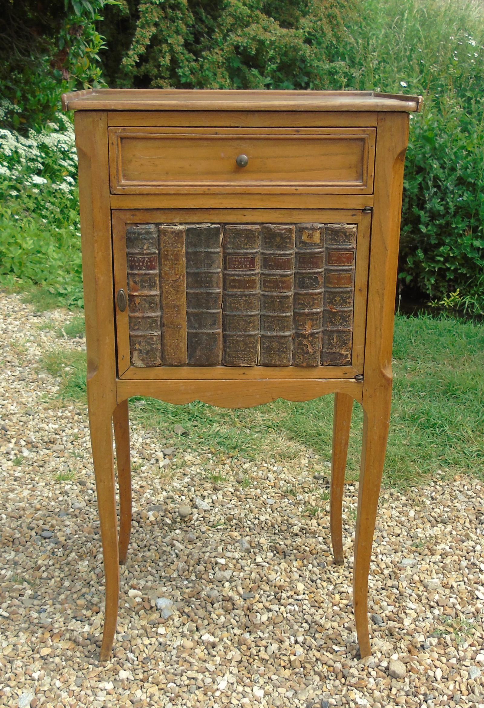 Antique French Fruitwood Bedside Cabinet Leather Book Fronts