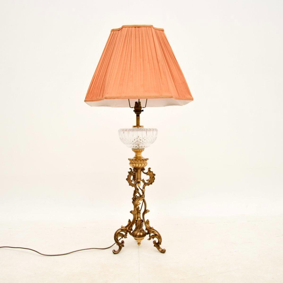 Antique French Gilt Bronze & Crystal Glass Table Lamp