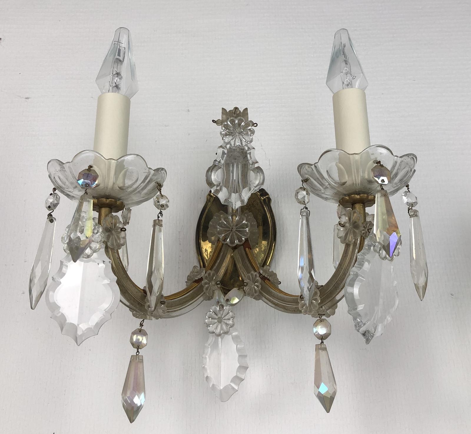 Antique French Gilt Bronze Sconces with Crystal Drops