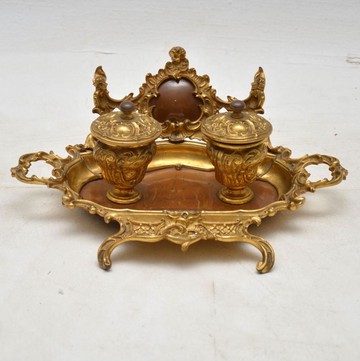 Antique French Gilt Bronze & Walnut Inkwell c.1860 (1 of 1)