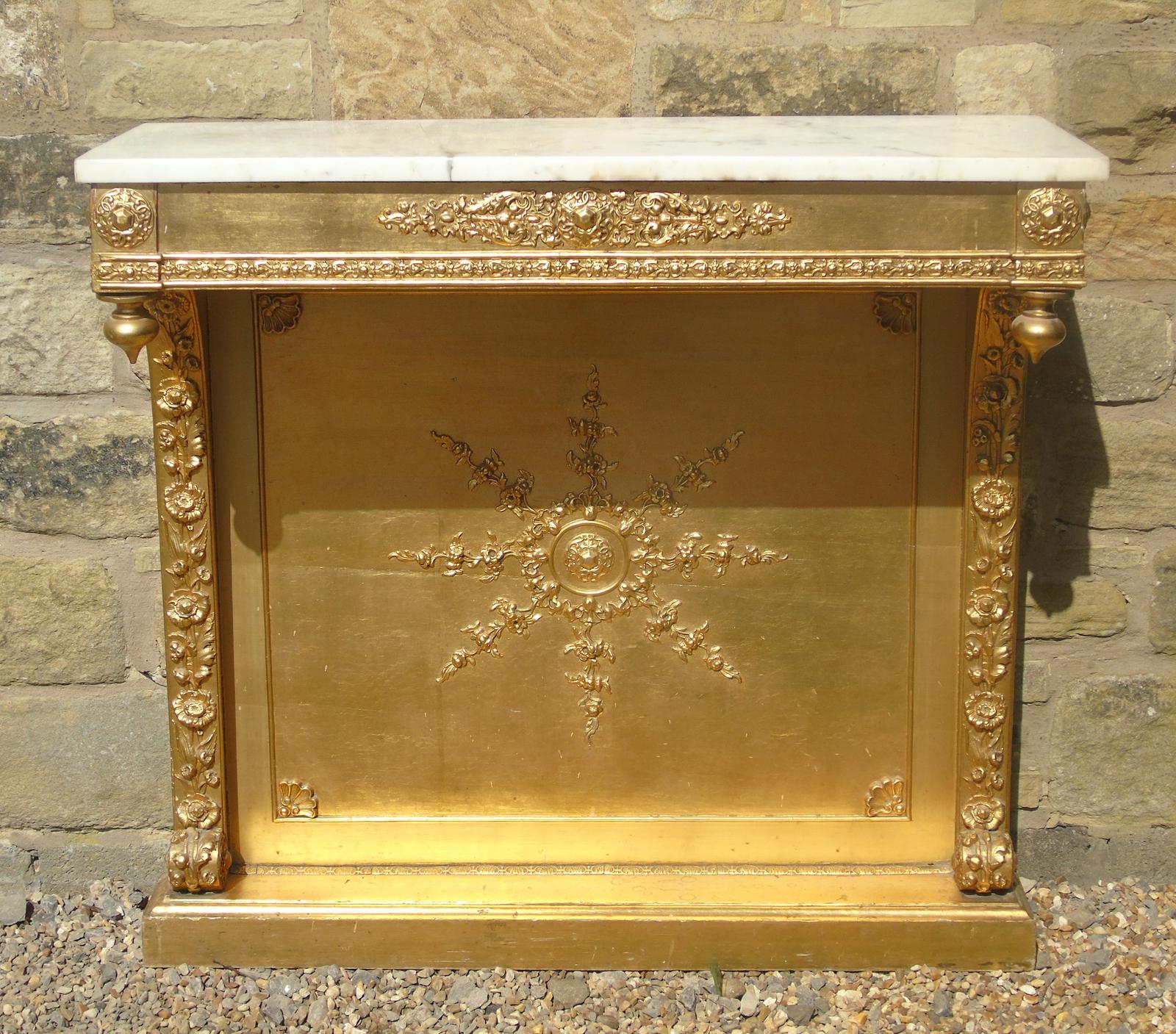 Antique French Gilt & Gesso Console Table Marble Top