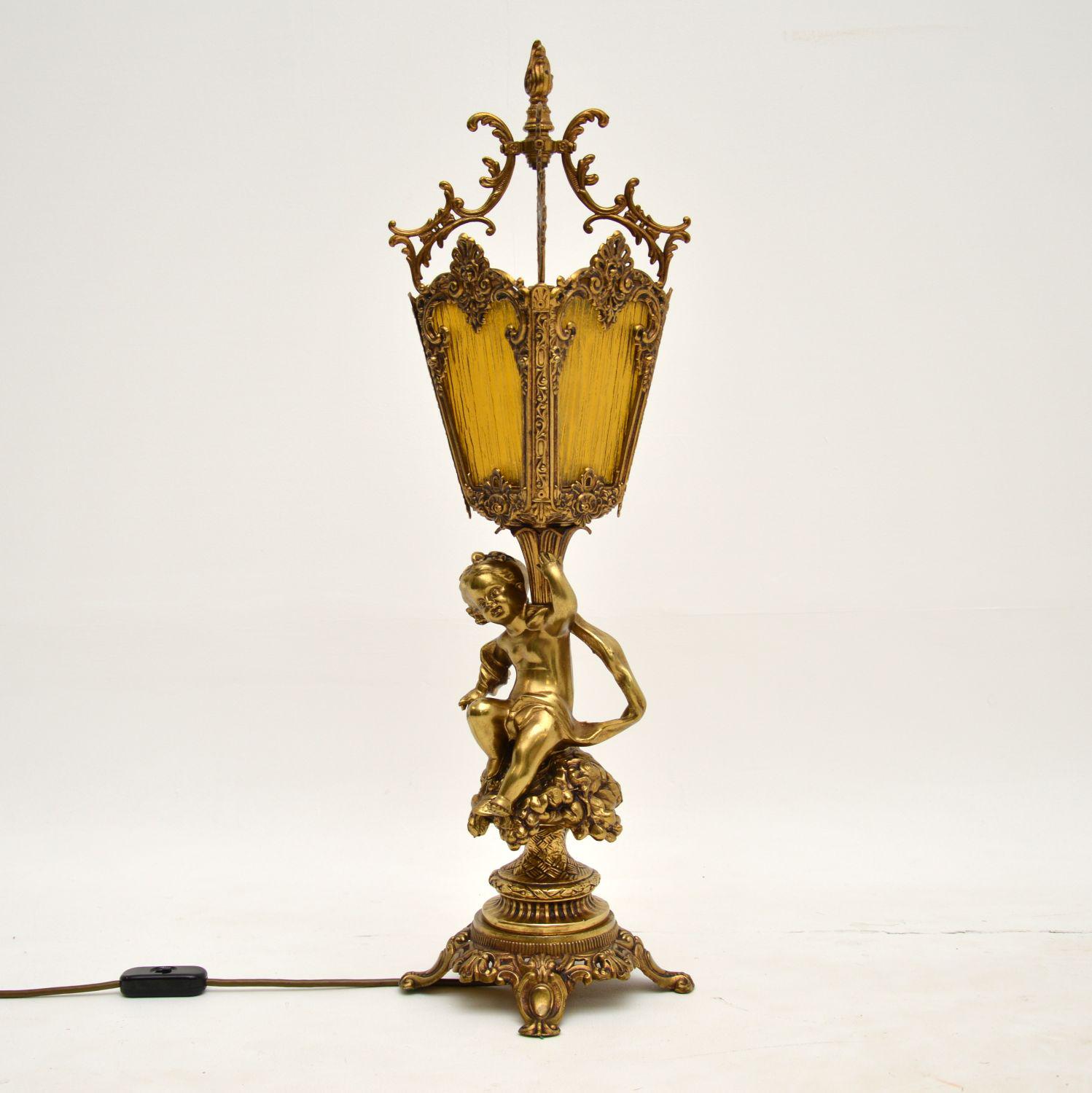 Antique French Gilt Metal & Glass Cherub Table Lamp (1 of 12)