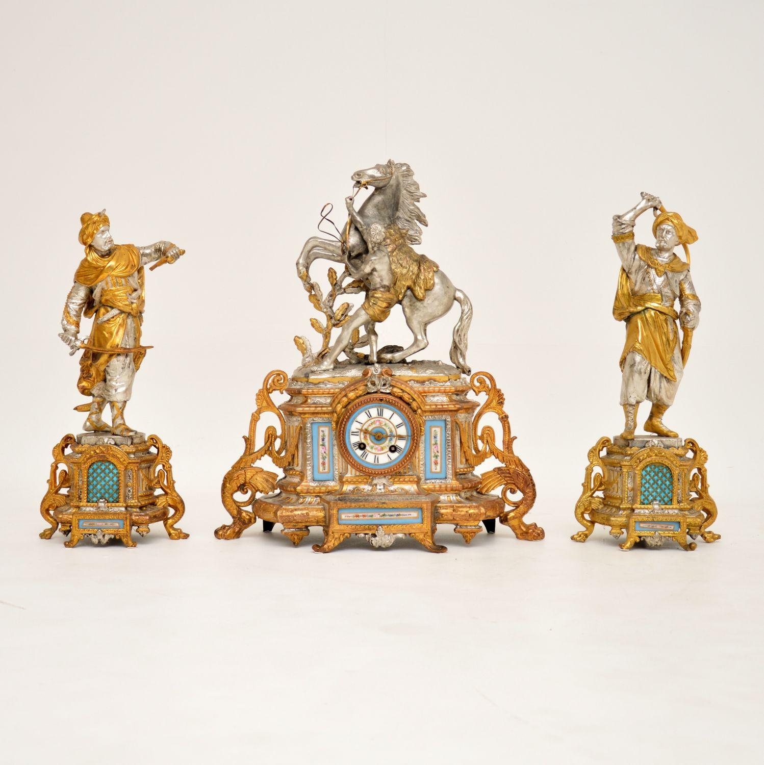 Antique French Gilt Metal Mantel Clock Set (1 of 14)