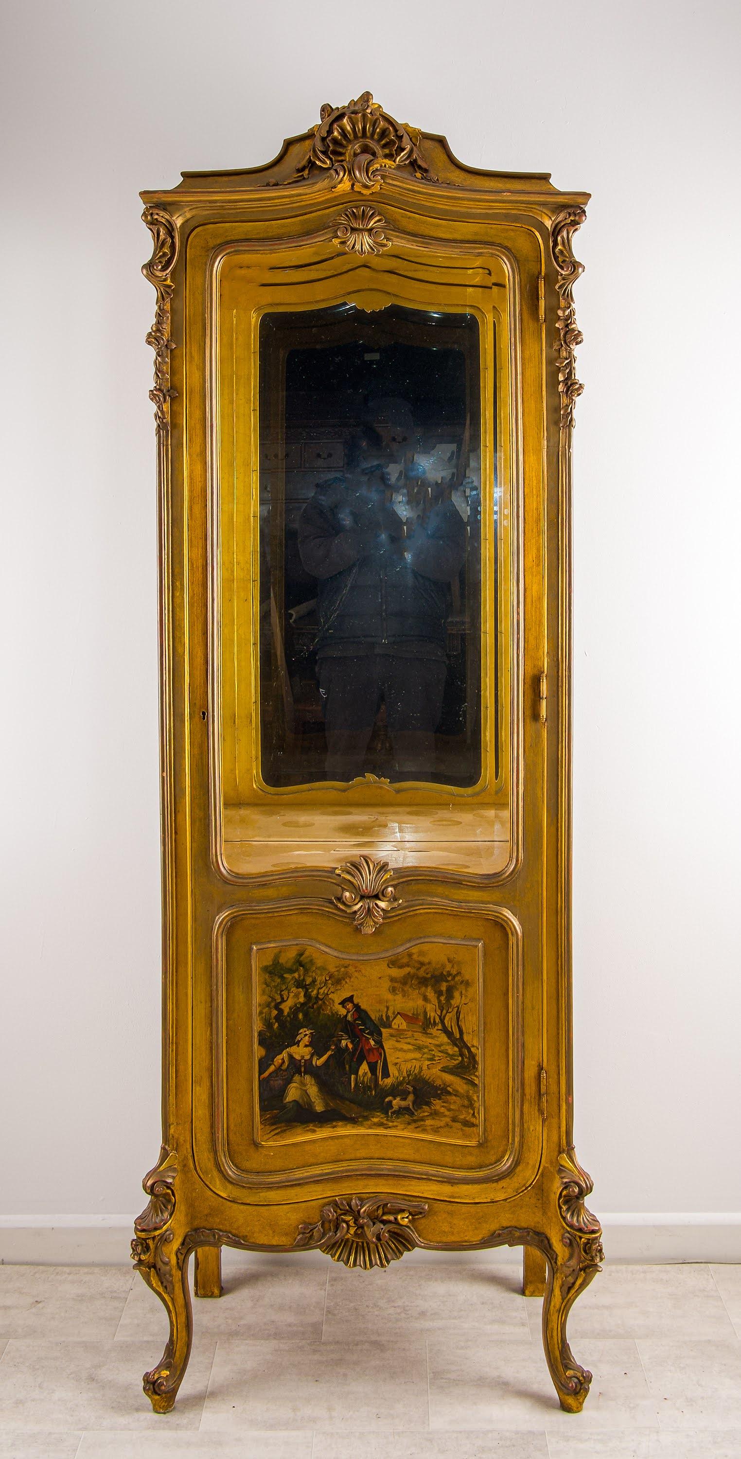 Antique French Giltwood Display Cabinet Vitrine with Painted Panels