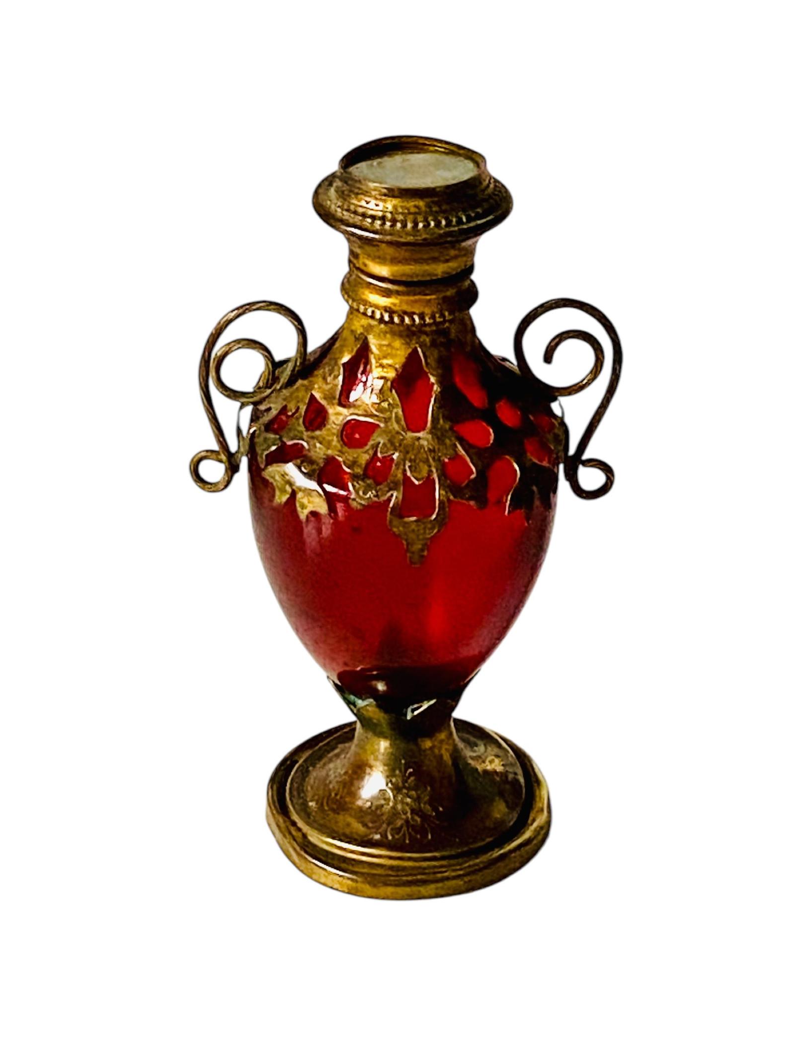 Antique French Grand Tour Souvenir Perfume Scent Bottle Amphora Form Gilt Ormolu Mount & Eglomise Miniature Painting c.1880