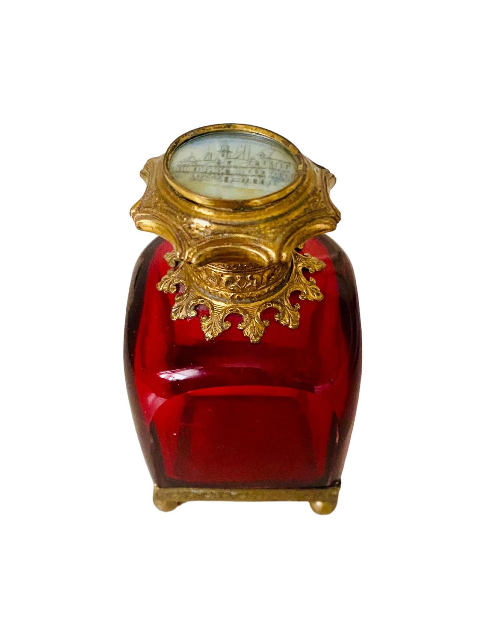 Antique French Grand Tour Souvenir Perfume Scent Bottle Gilt Ormolu Mount & Eglomise Miniature Painting c.1880