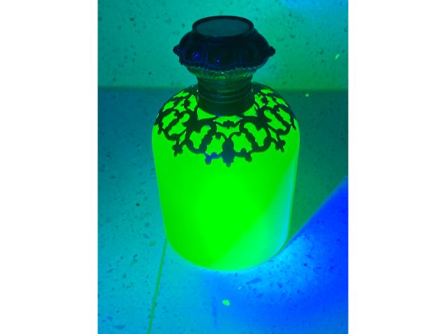 Antique French Grand Tour Souvenir Perfume Scent Bottle Uranium / Vaseline Glass Gilt Ormolu Mount & Eglomise Miniature Painting Circa 1880 (1 of 9)