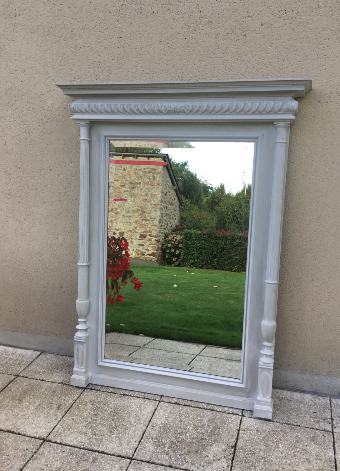 Antique French Huge Walnut Mirror Painted in Dove Grey Free Delivery