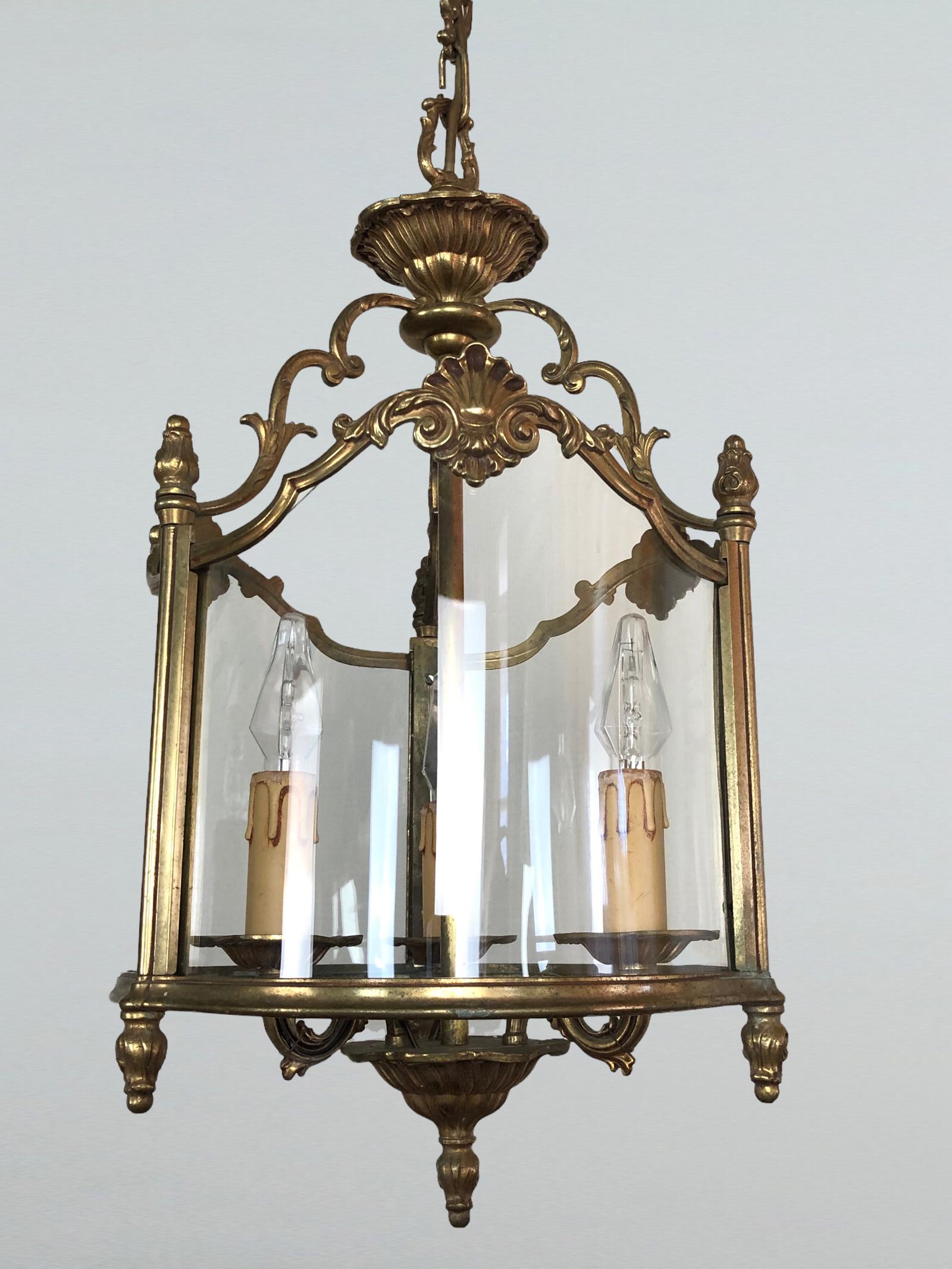 Antique French Large Gilt Bronze Circular Lantern 3 Light Pendant