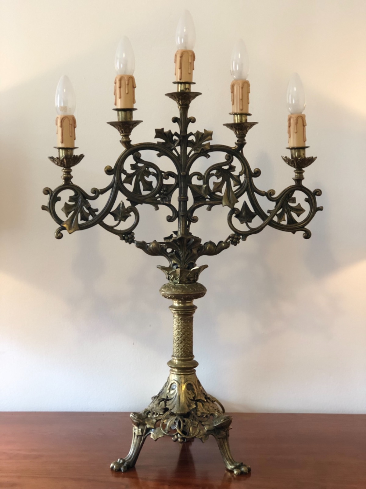 Antique French Large Gothic Religious Ormolu Brass Candelabra