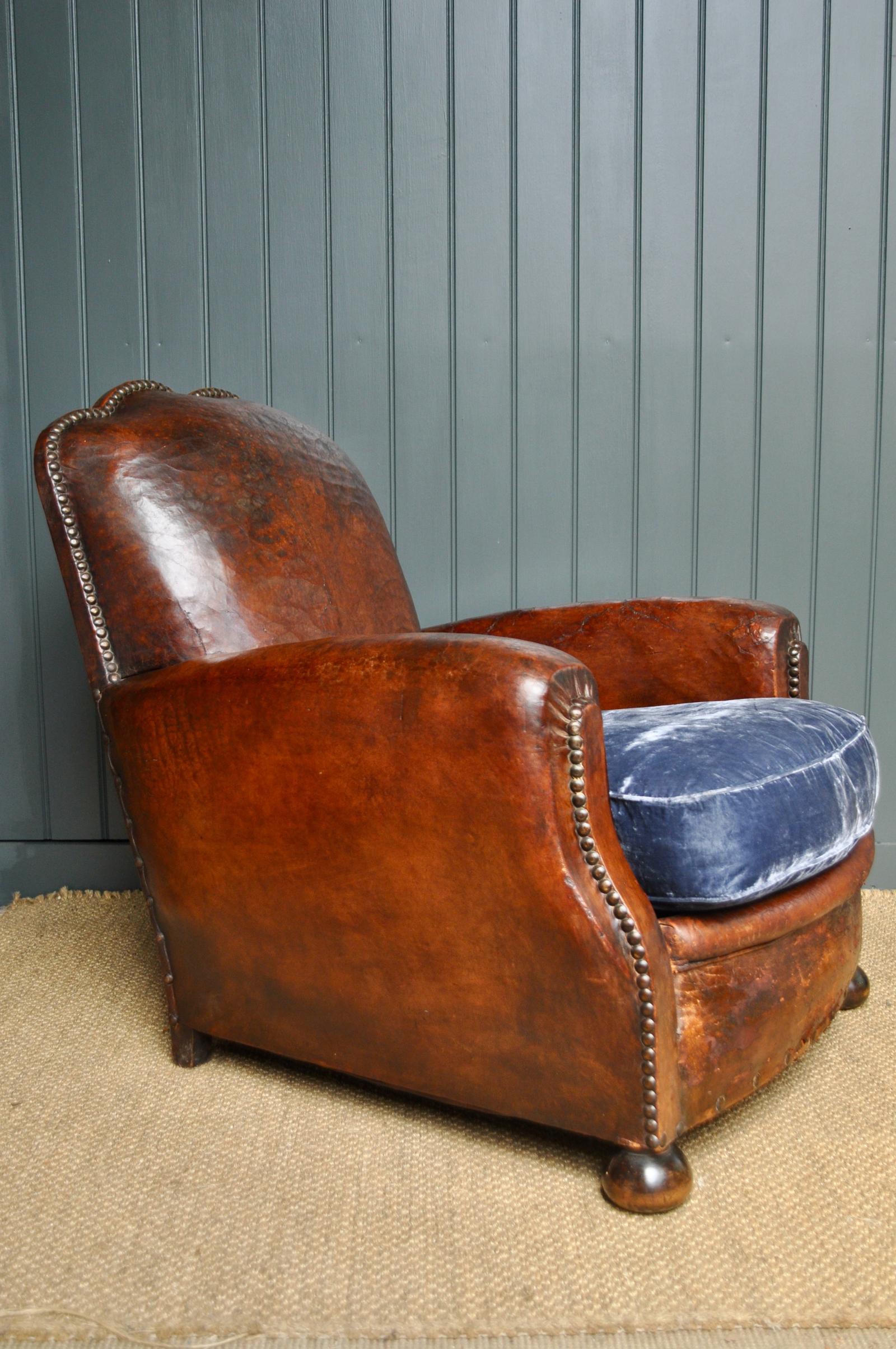 Antique French Leather Club Chair