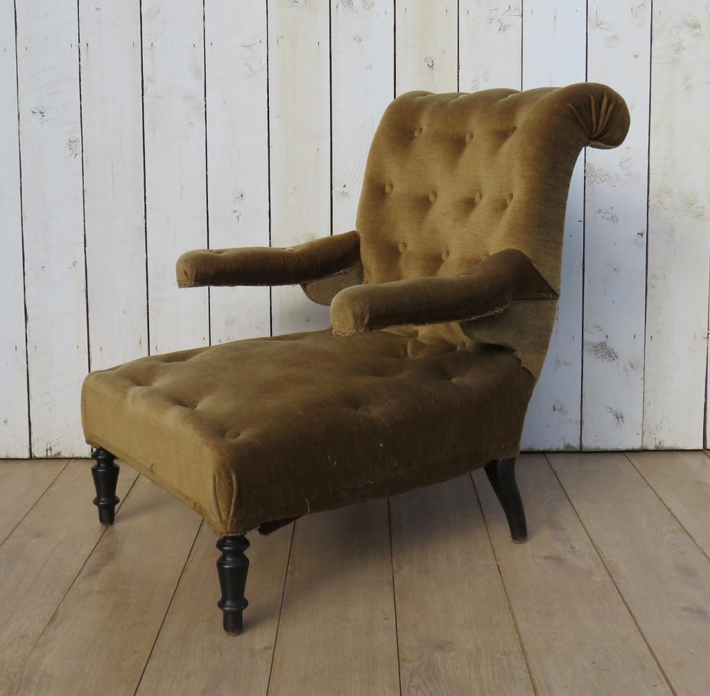 Antique French Library Chair For Re-upholstery