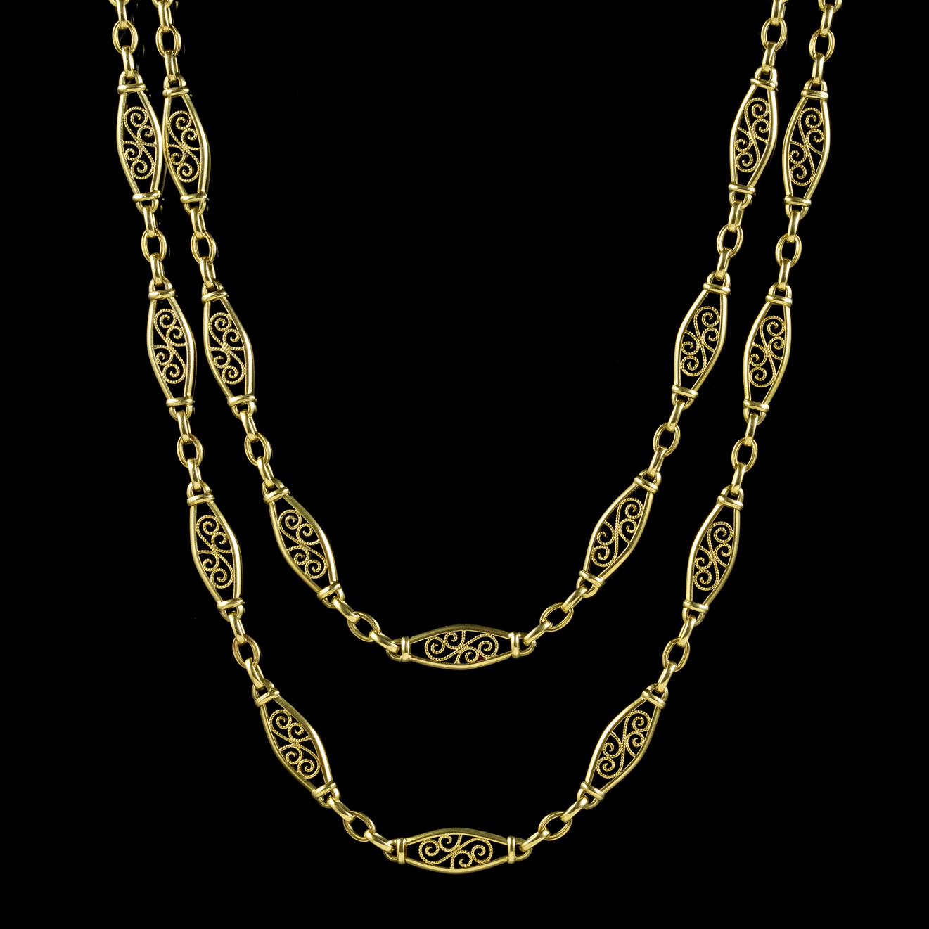 Antique French Long Guard Chain 18ct Yellow Gold c.1910