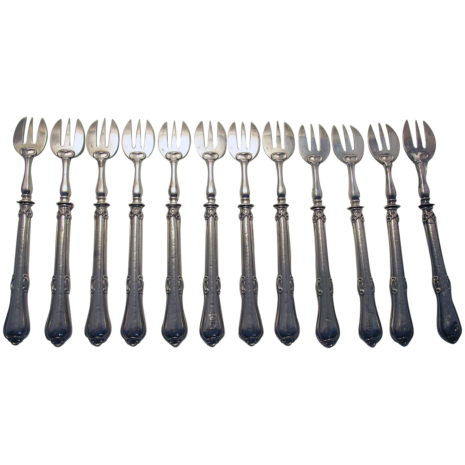 Antique French Louis Philippe Era Sterling Silver Oyster Fork by Hippolyte Thomas, Shell / Scroll Pattern