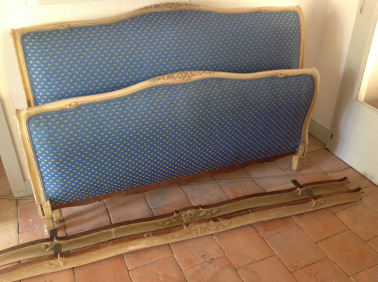 Antique French Louis XV Capitonne Double King Size Bed Replacement Cotton Fabric Long Painted Walnut