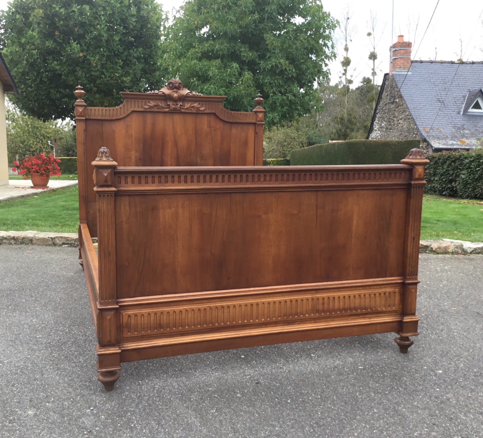Antique French Louis XV Double Bed Frame Carved Walnut