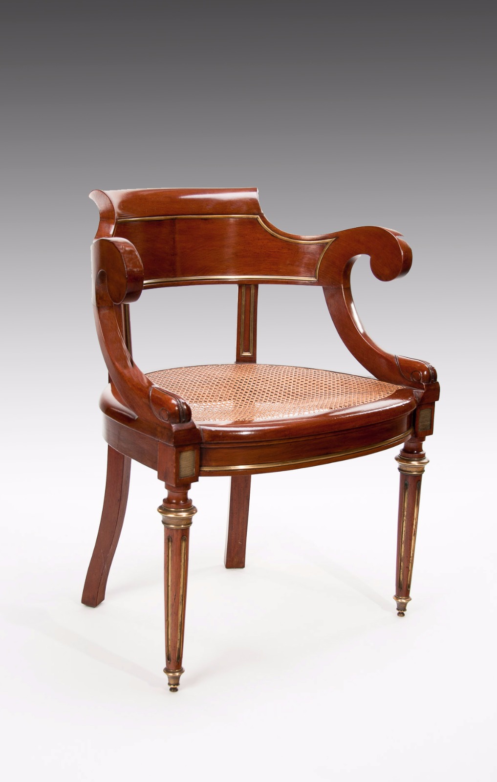 Antique French Mahogany & Brass Desk Chair (1 of 1)