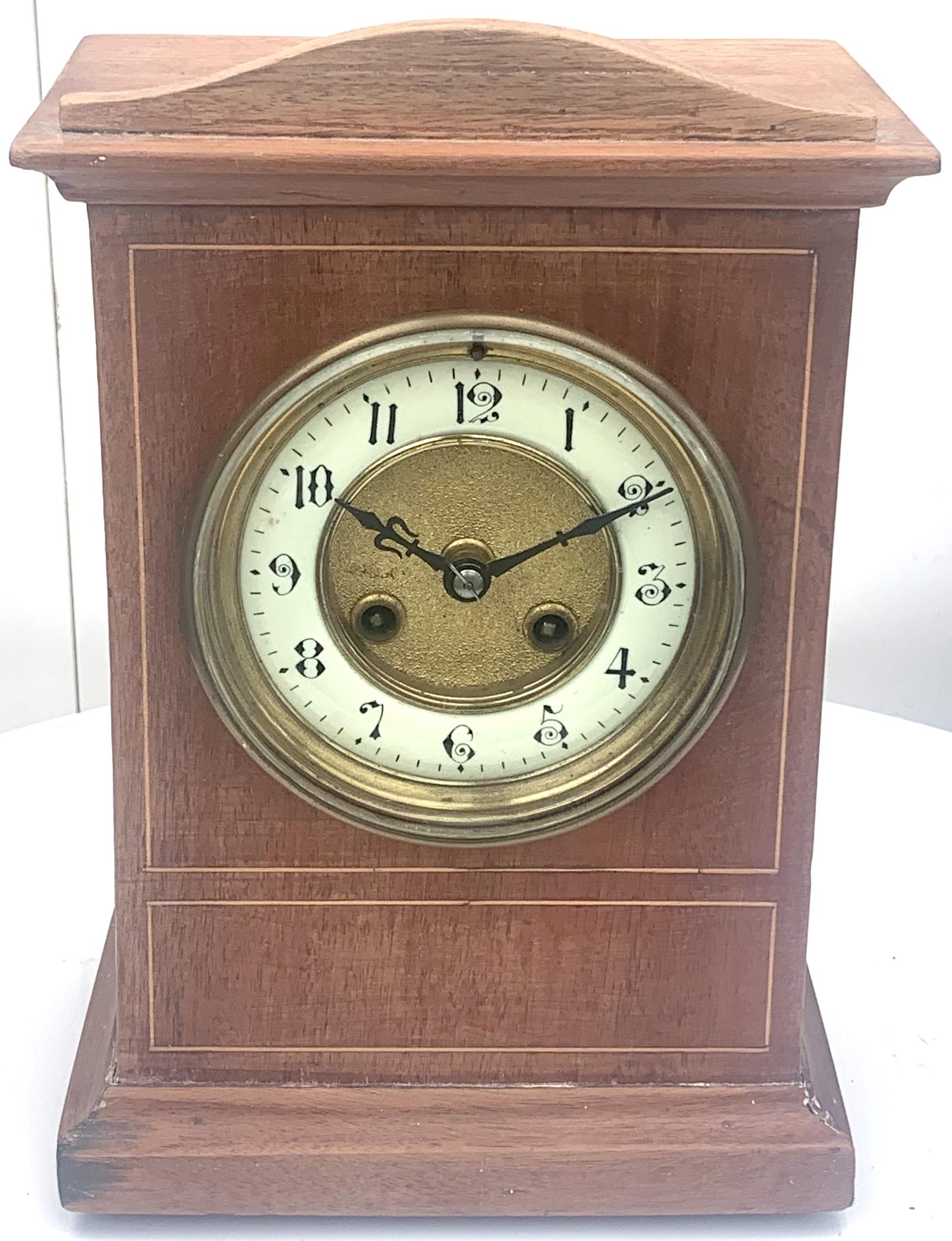 Antique French Mahogany & Satinwood Inlay Cubed 8 Day Striking Mantle Clock