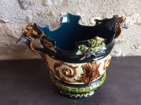 Antique French Majolica Wine Cooler with Hunting - Animal Decoration St Hubert
