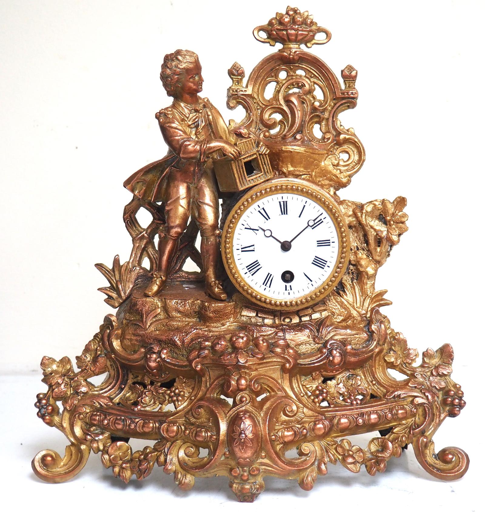 Antique French Mantel Clock – 8-day Magician Gilt Mantel Clock c1880 (1 of 13)