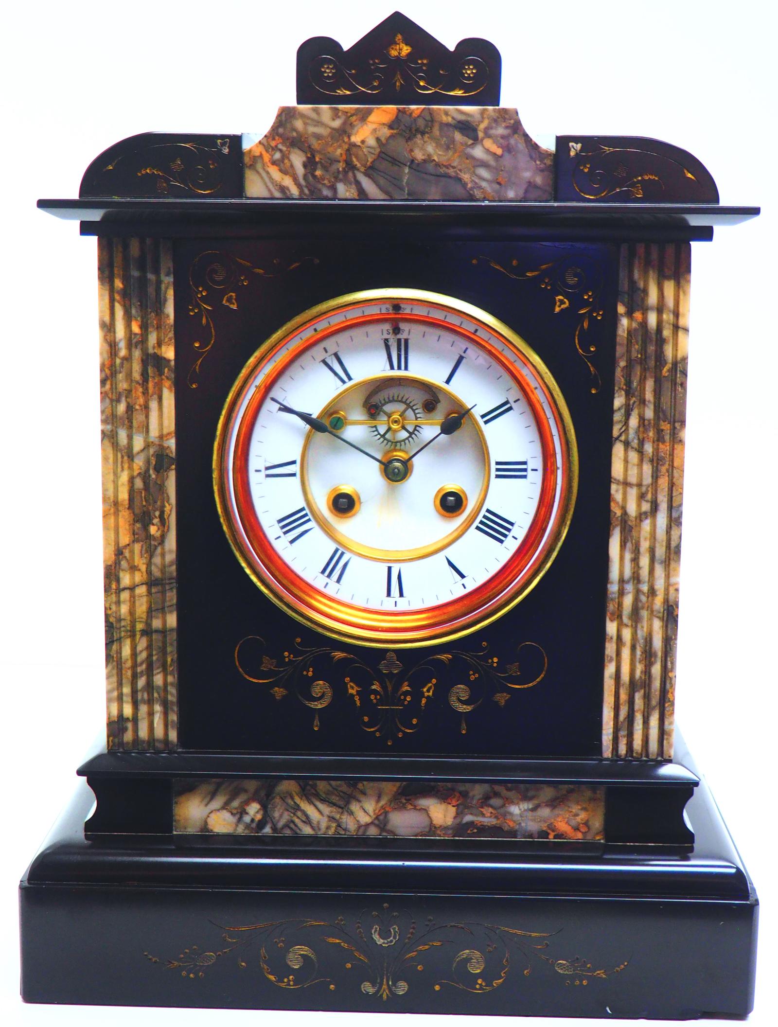 Antique French Mantel Clock – Slate & Marble 8-day Striking Mantel Clock