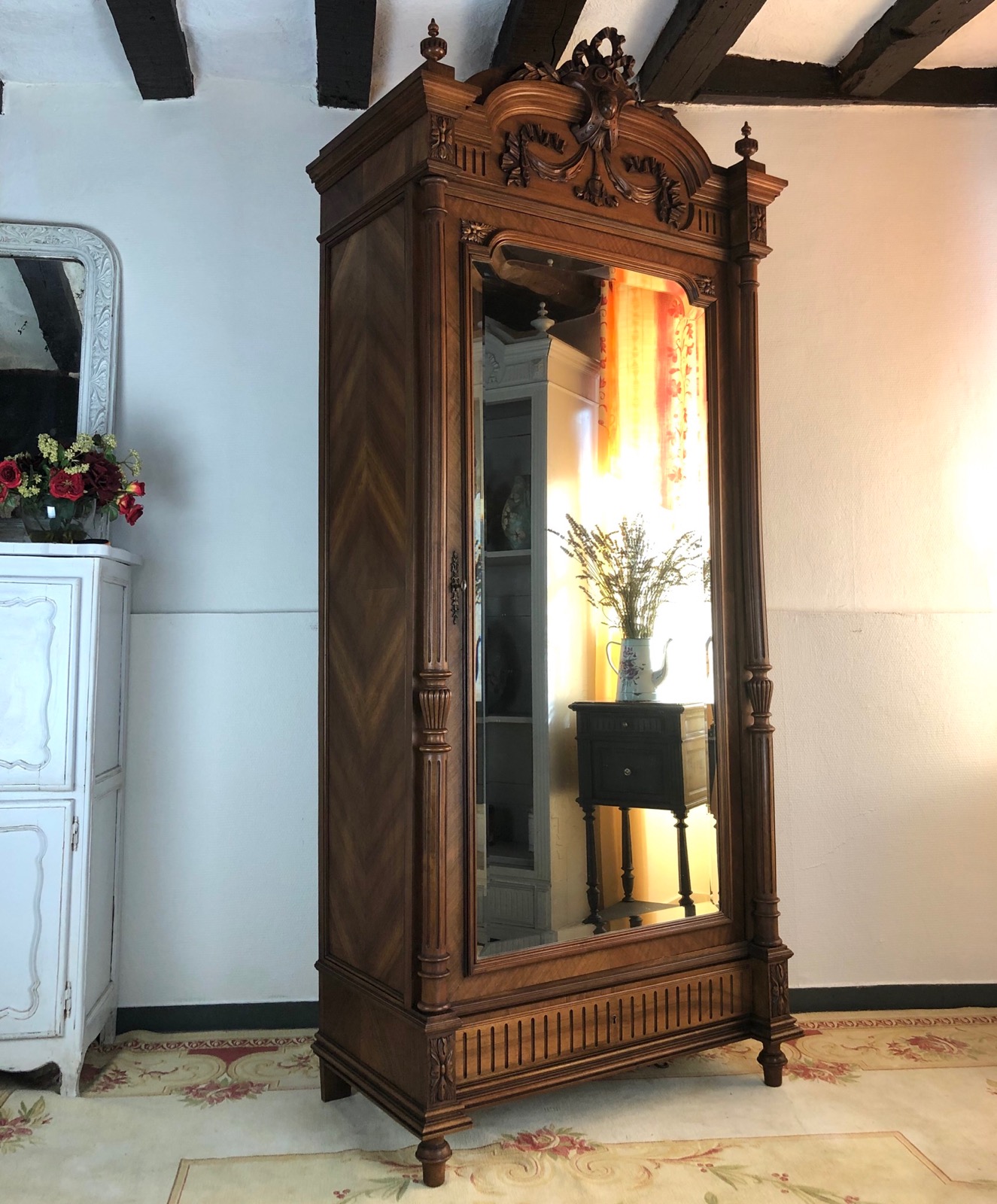 Antique French Mirrored Armoire Wardrobe Linen Cupboard