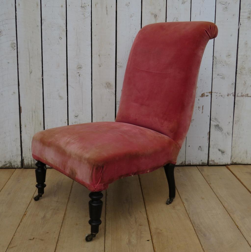 Antique French Napoleon III Scroll Top Slipper Chair