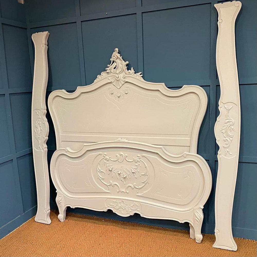 Antique French Painted Louis XV Wooden Bed Double 4' 6"