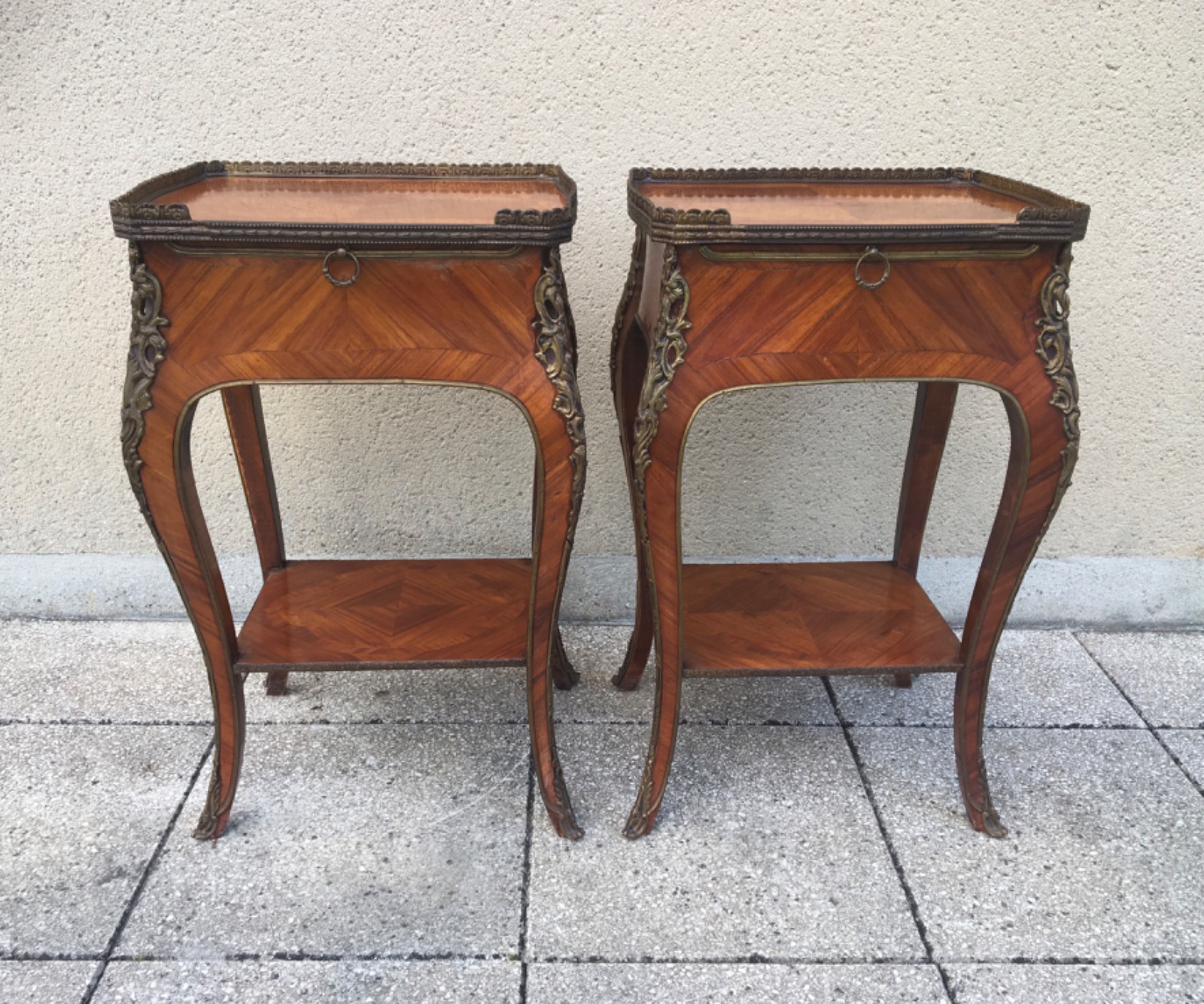 Antique French Pair of Bedside / Occasional Tables Louis XV with Ormolu Mounts