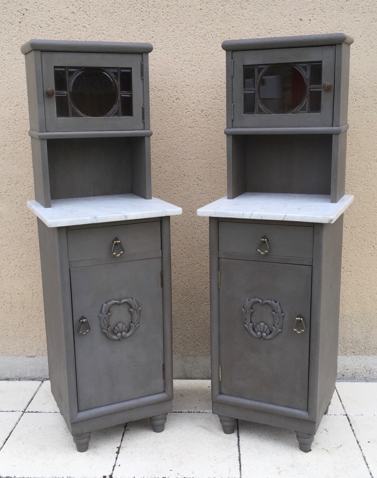 Antique French Pair of Marble Bedside Cabinets Occasional Tables Art Nouveau
