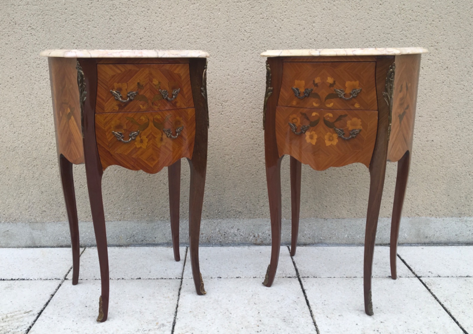 Antique French Pair of Marble Bedside Tables Louis XV Style