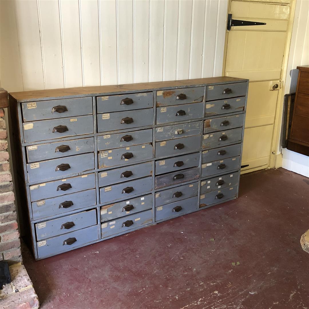 Antique French Pine Bank of 32 Drawers in Old Grey Paint (1 of 14)