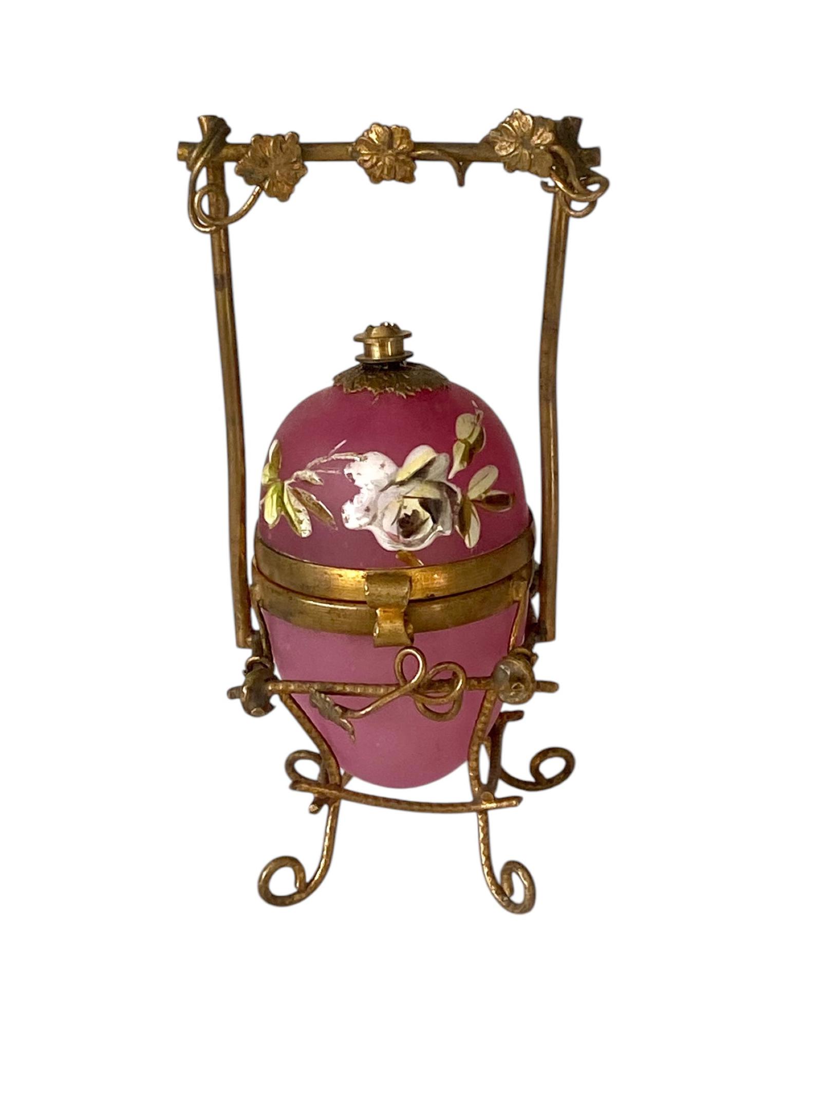 Antique French Pink Opaline & Enamel Egg Form Trinket Box c.1860