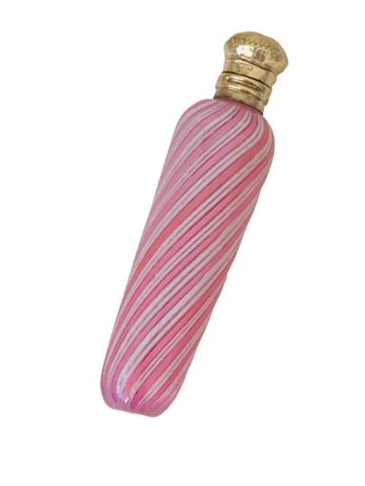 Antique French Pink & White Striped Latticino Perfume Scent Bottle c.1880