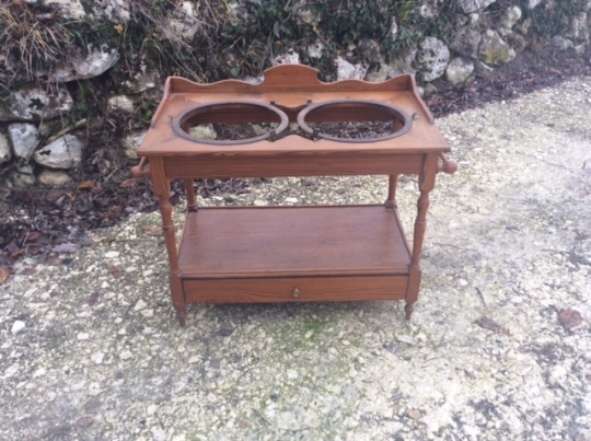Antique French Pitch Pine Pan Holder with Lower Utensil Drawer 56cm Wide Trivet