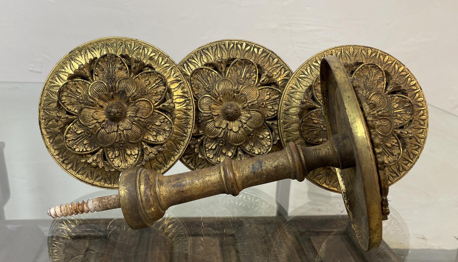 Antique French Regal Set Gilt Bronze Ormolu Huge Tiebacks Curtain Hooks Rosettes