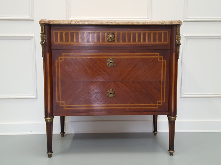 Antique French Rosewood Marble Top Commode Chest of Drawers c.1910