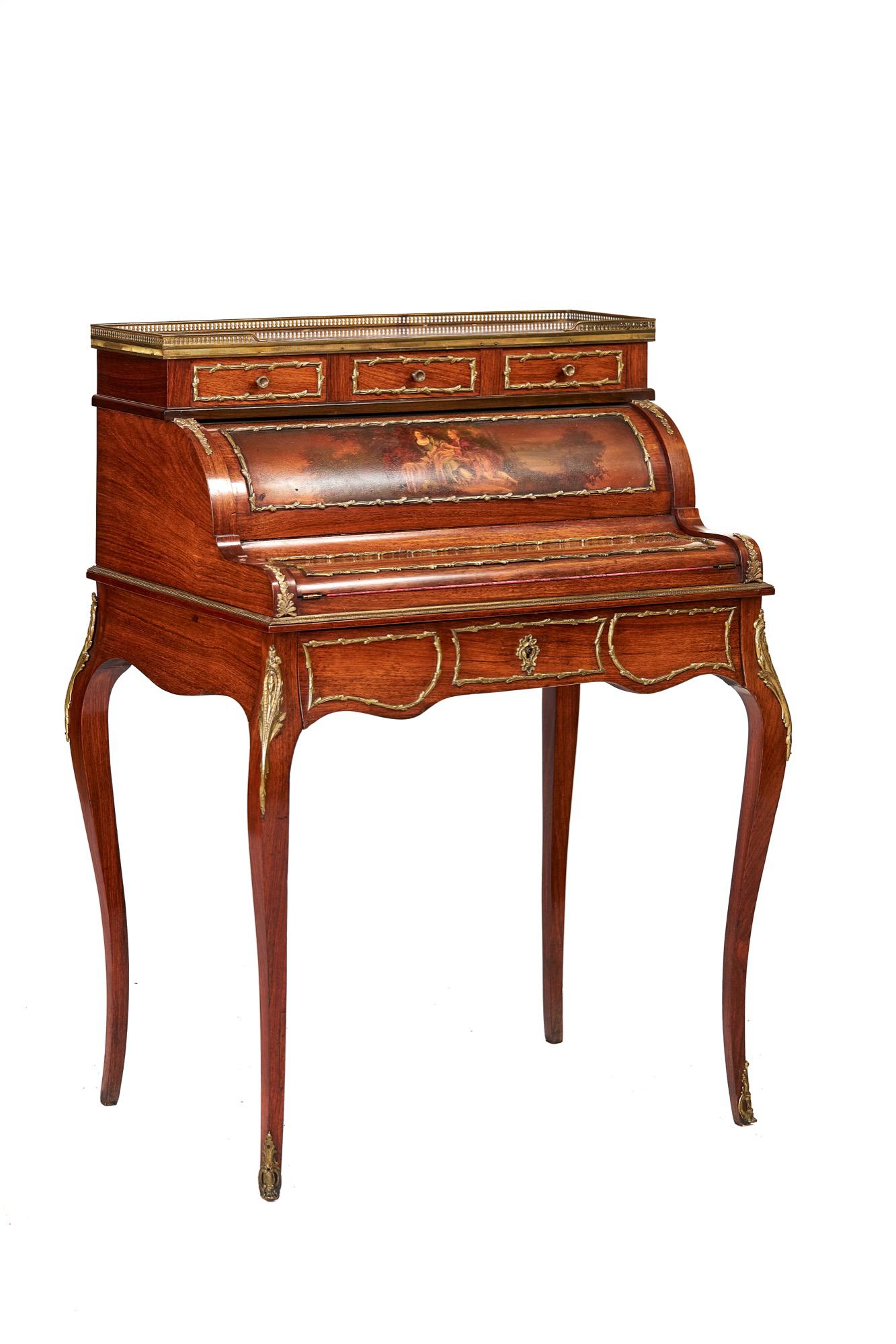 Antique French Rosewood Vernis Martin style Bureau de Dame circa 1900