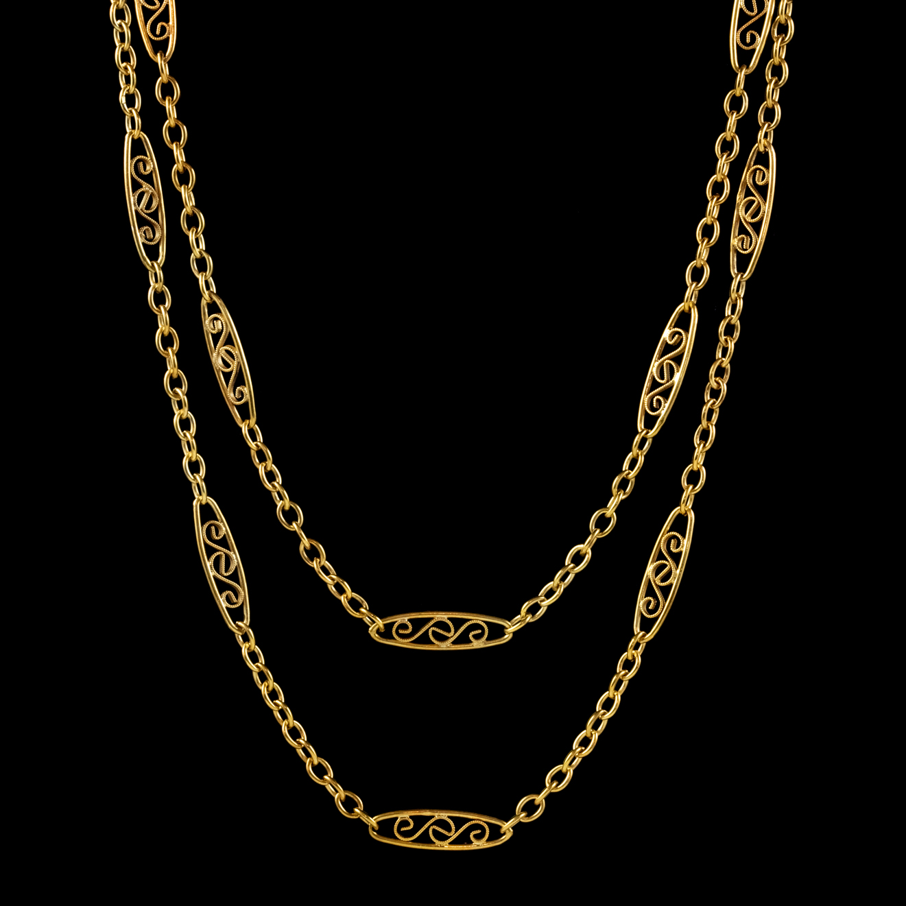 Antique French Sautoir Chain Silver 18ct Gold Gilt c.1900