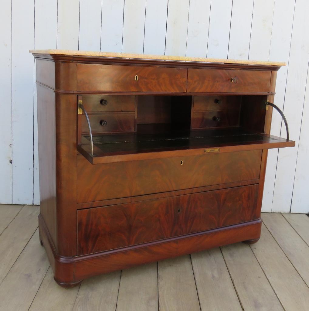 Antique French Secretaire Chest of Drawers with Marble Top