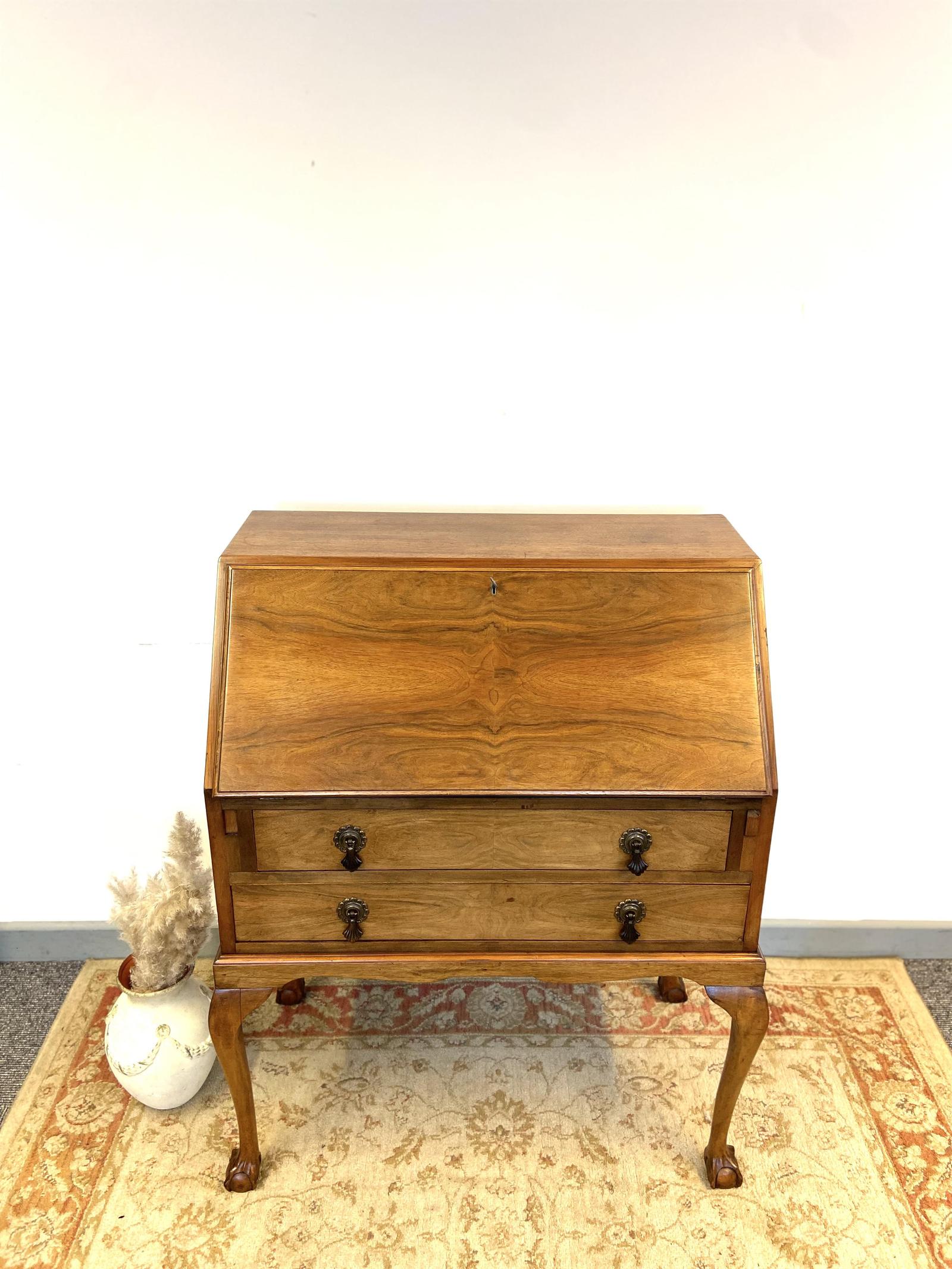 Antique French Secretary Desk / Vanity Walnut Burl Wood / 19th Century