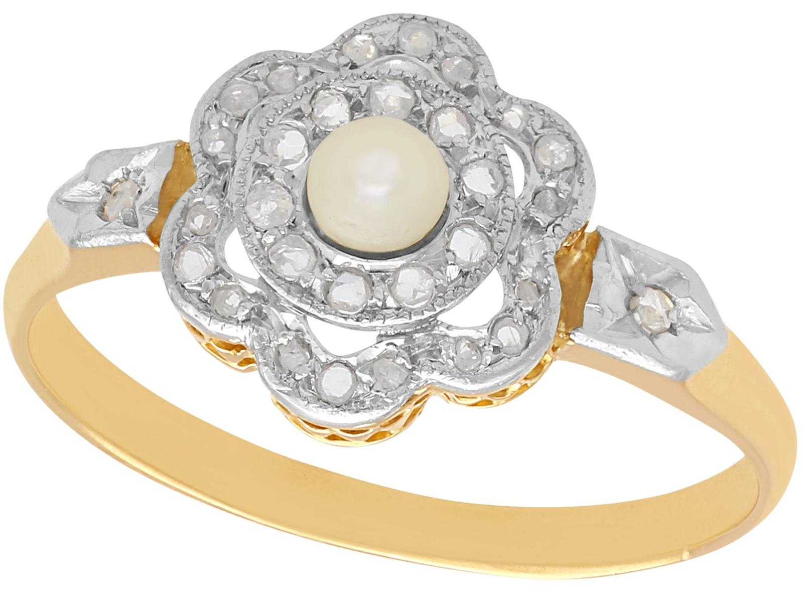 Antique French Seed Pearl & 0.18ct Diamond, 18ct Yellow Gold Cluster Ring c.1910 (1 of 9)