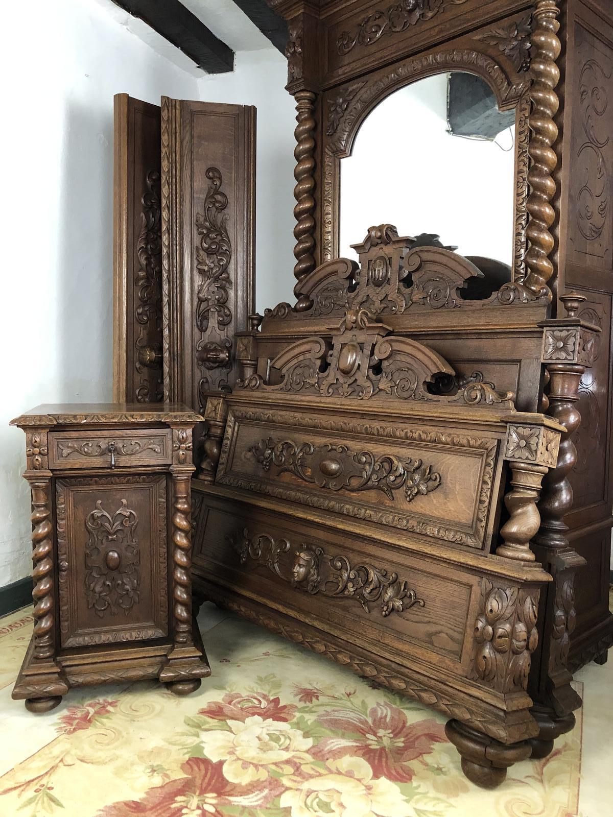 Antique French Solid Oak Three Piece Bedroom Set Superb